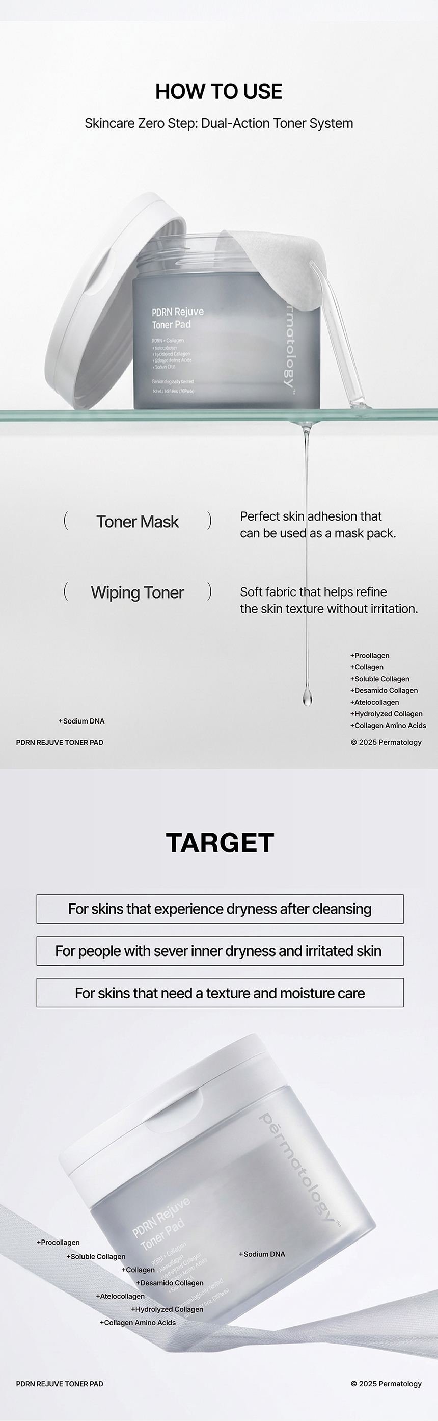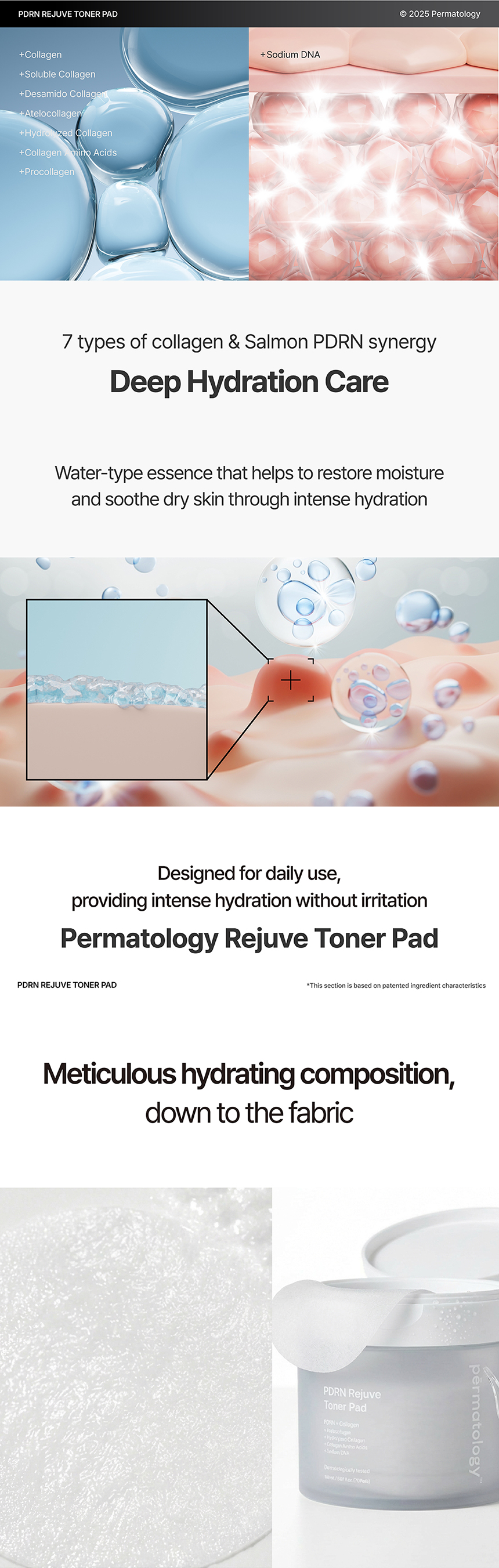 This toner pad is specifically formulated to restore skin hydration while gently refining the skin texture. With 7 types of Collagen, Salmon PDRN, and Niacinamide and Adenosine, this toner pad leaves the skin deeply hydrated and soft.