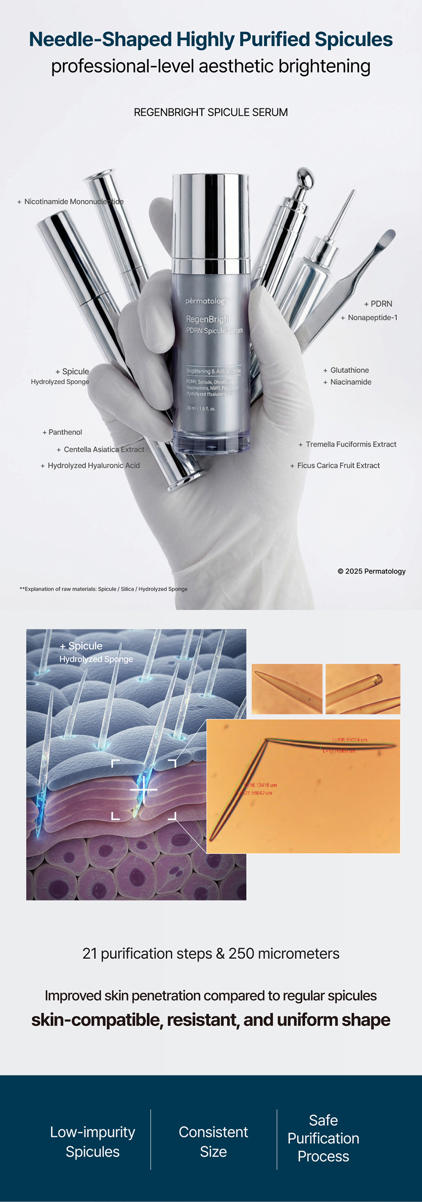 This serum contains high-purity spicules* purified 21 times and nano-liposomes to enhance deep penetration and activation of active ingredients.