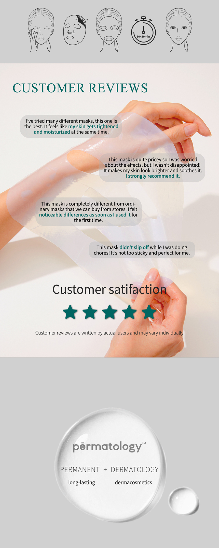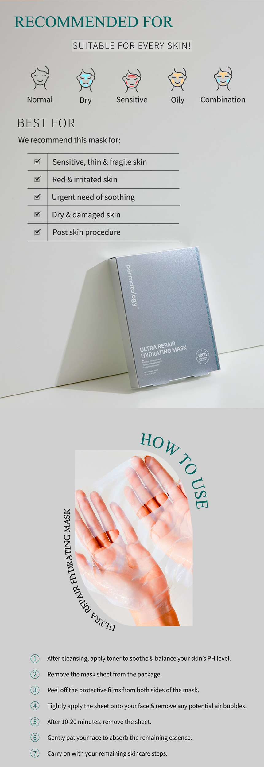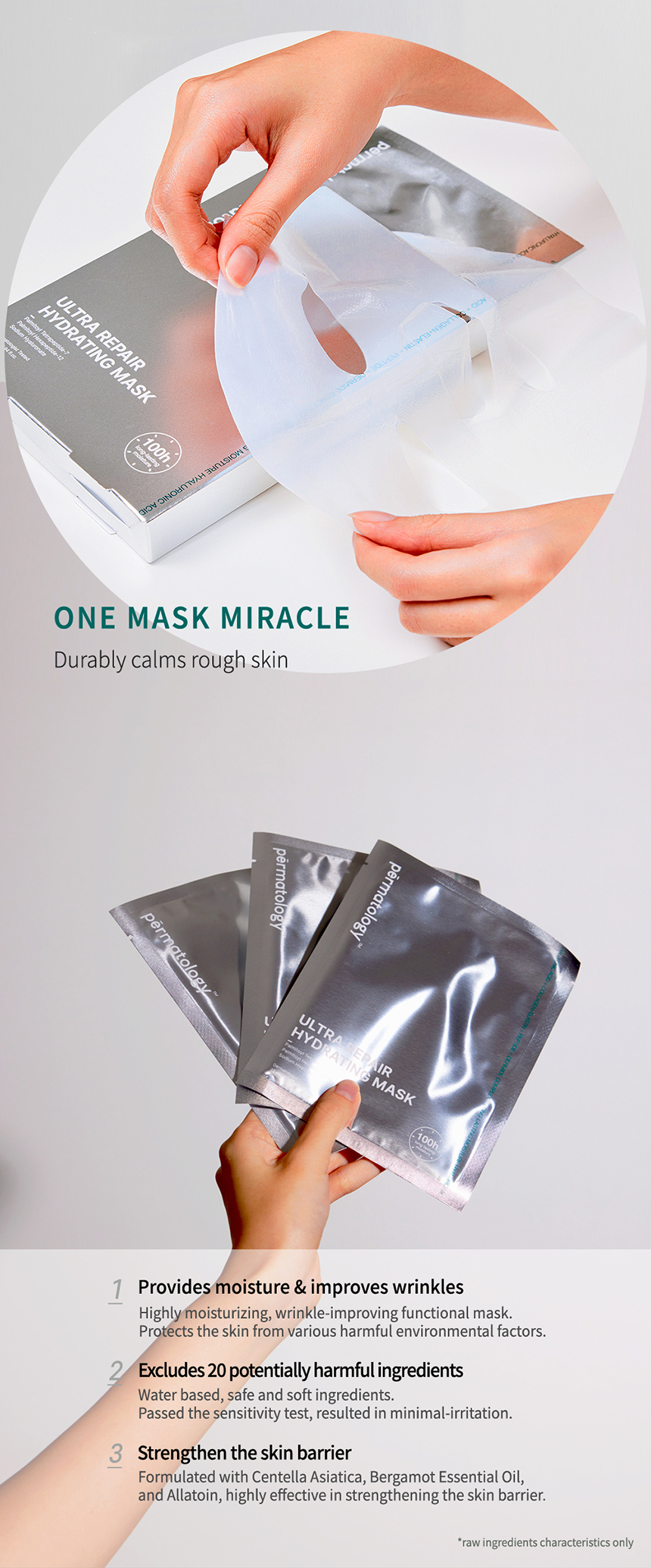 This mask has passed the 100 hours moisturizing test, ensuring that it's moisturizing effect last for up to a 100 hours.